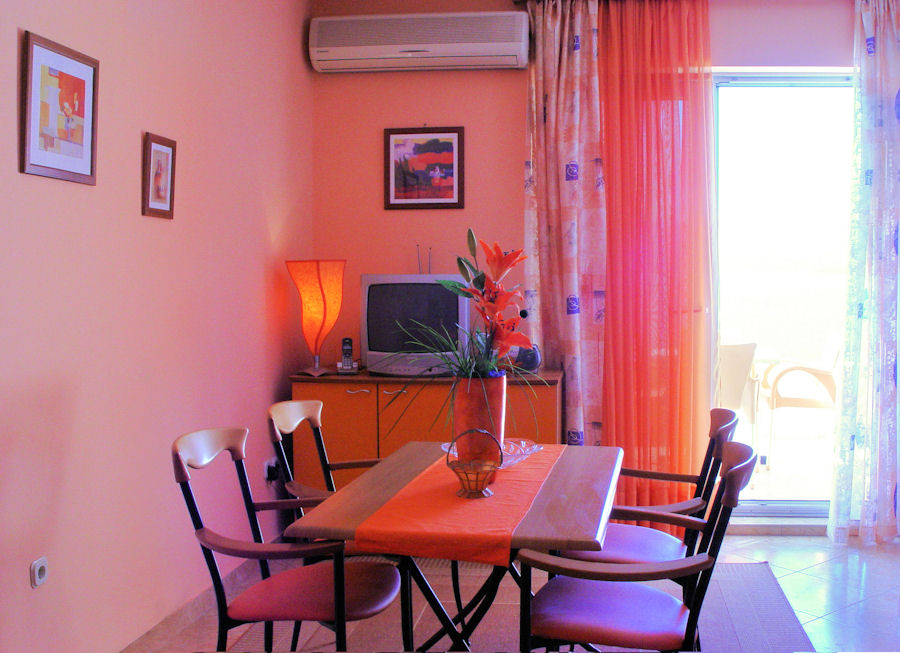 Raspolažemo sa 9 apartmana koji se nalaze tek desetak metara od mora. Svi apartmani opremljeni su sa SAT-TV, klimatizirani su, imaju mini kuhinju sa svim potrebnim sadržajima, dnevnu sobu, spavaću sobu i kupaonicu.